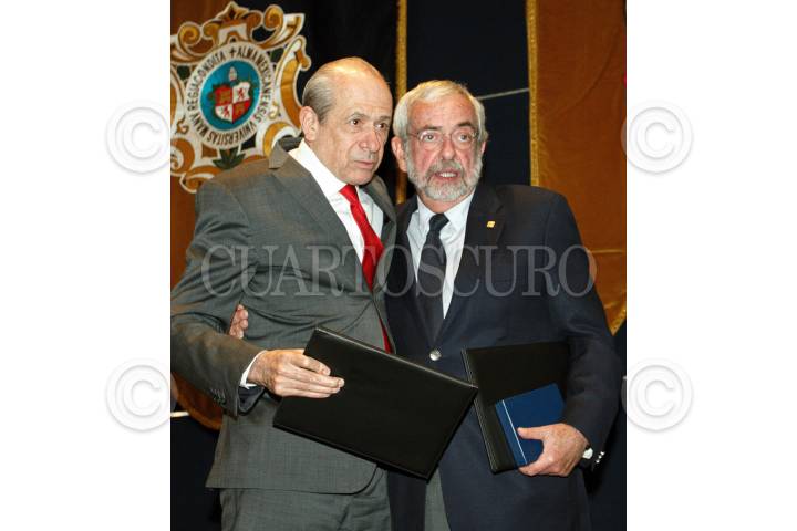 CIUDAD DE MÉXICO, 01MARZO2017.- Enrique Fernández Fassnacht, director del IPN, y Enrique Graue Wiechers, rector de la UNAM, durante el 45 aniversario del Sistema Universidad Abierta y Educación a Distancia, en la Máxima Casa de Estudios. FOTO: ISAAC ESQUIVEL /CUARTOSCURO.COM