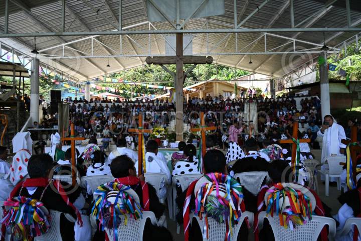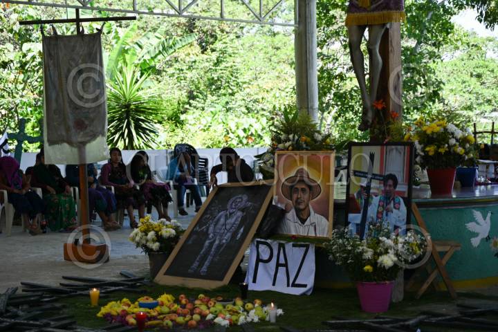 ACTEAL, CHIAPAS, 05JULIO2025.- Se cumplen cuatro años del asesinato de Simón Pedro Pérez López , catequista y defensor de derechos humanos en Simojovel , Pantelhó y Chenalhó , Chiapas. Fue asesinado en 2021 tras denunciar la violencia del crimen organizado y pedir justicia ante las autoridades estatales. La Organización Sociedad Civil Las Abejas de Acteal exige que se investigue a los autores intelectuales del crimen y denuncia la impunidad de la Fiscalía de Chiapas. Honran su legado como luchador no violento, defensor de la Madre Tierra y guía espiritual de su comunidad. Tras la lectura del comunicado, se ofició una misa presidida por el obispo de la Diócesis de San Cristóbal, Rodrigo Aguilar , acompañada por distintos párrocos y diáconos de la región de Los Altos de Chiapas. FOTO: ISABEL MATEOS HINOJOSA / CUARTOSCURO.COM
