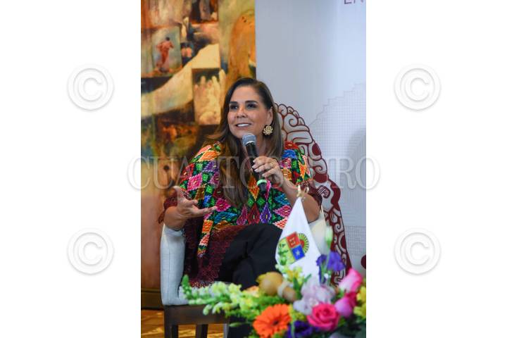CAMPECHE, CAMPECHE, 07FEBRERO2025.- Mara Lezama gobernadora de Quintana Roo, durante su intervención en el encuentro “Orgullo Peninsular “ donde junto a los gobernadores Joaquín Díaz Mena de Yucatán y Layda Sansores, de Campeche, acordaron fortalecer la colaboración entre los tres estados. En conferencia de prensa en la casa de los gobernadores en Campeche, destacaron la importancia de trabajar unidos en los ejes de turismo, seguridad y Desarrollo Sostenible para la península. FOTO: MICHAEL BALAM/CUARTOSCURO.COM