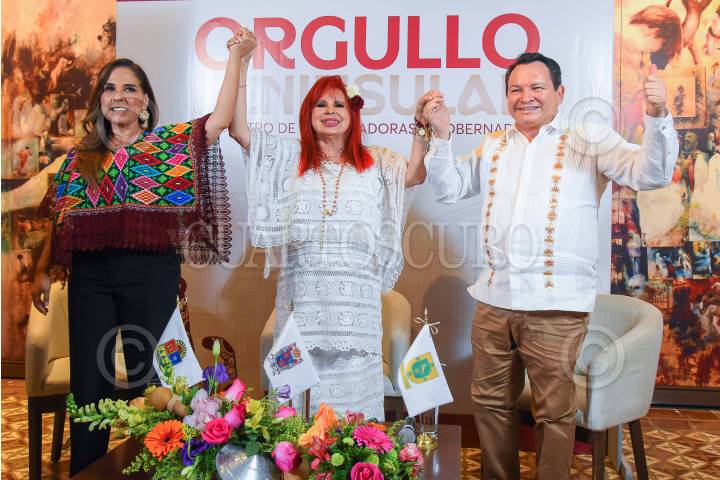 CAMPECHE, CAMPECHE, 07FEBRERO2025.- Layda Sansores, gobernadora de Campeche, encabezó el encuentro “Orgullo Peninsular “ donde junto a los gobernadores, Mara Lezama de Quintana Roo y Joaquín Díaz Mena de Yucatán, acordaron fortalecer la colaboración entre los tres estados. En conferencia de prensa en la casa de los gobernadores en Campeche, destacaron la importancia de trabajar unidos en los ejes de turismo, seguridad y Desarrollo Sostenible para la península. FOTO: MICHAEL BALAM/CUARTOSCURO.COM