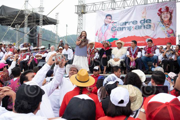 ZINACANTAN, CHIAPAS, 26MAYO2024.- La candidata a la presidencia de México; Xóchitl Gálvez por la coalición Fuerza y Corazón por México, realizó el cierre de campaña en la cabecera municipal ante cientos de zinacantecos. FOTO: ISABEL MATEOS /CUARTOSCURO.COM