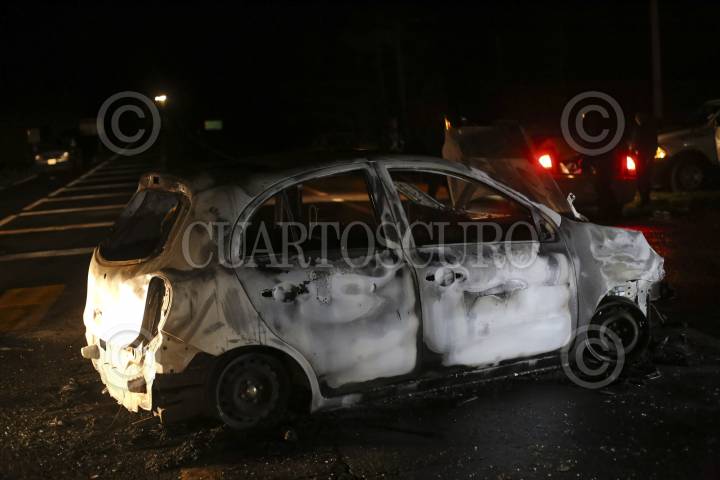 TINGAMBATO, MICHOACÁN, 08JUNIO2015.- Cuando parecía que el día de la jornada electoral concluiría sin incidentes, estalló el conflicto en la Meseta Purépecha. Anoche, estudiantes normalistas le prendieron fuego a dos vehículos a manera de presión al gobierno del estado para que atienda sus demandas. En la carretera Uruapan-Paracho, los estudiantes quemaron un camión de una empresa panificadora, mientras que en la carretera libre Pátzcuaro-Uruapan, a la altura del entronque conocido como San Juan Tumbio, incendiaron una unidad propiedad de una refresquera. FOTO: JUAN JOSÉ ESTRADA SERAFÍN /CUARTOSCURO.COM