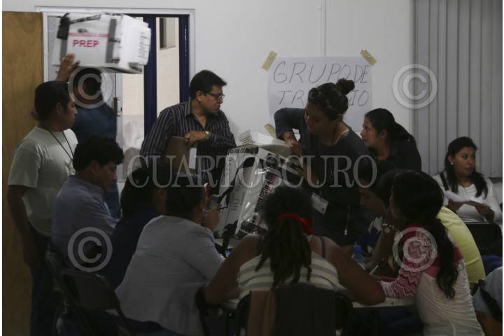 OAXACA, OAXACA, 10JUNIO2015.- Este miércoles se realizó el conteo de votos para definir al ganador de la elección a diputados federales en los once distritos del estado, sin embargo en el distrito 08 es en el único en el que el conteo podría cambiar el resultado, ya que el aspirante de la alianza PRD - PT, Francisco Martínez Neri aventaja a la candidata priísta, Beatriz Rodríguez Casasnovas por casi 300 sufragios. FOTO: ARTURO PÉREZ ALFONSO /CUARTOSCURO.COM