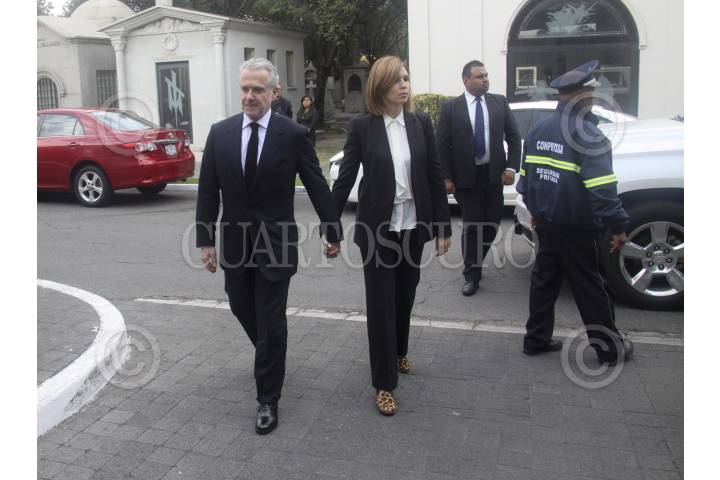 CIUDAD DE CIUDAD DE MÉXICO, 10DICIEMBRE2016.- Velorio de Rafael Tovar y de Teresa, Secretario de Cultural, que falleció la madrugada del día de hoy a consecuencia del cáncer. el ex gobernador de Veracruz Miguel Alemán Valdez, y su esposa Chistiane Martel llegan ala capilla del panteón francés. FOTO: ANTONIO CRUZ /CUARTOSCURO.COM