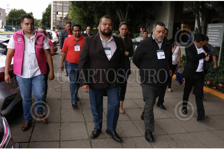 CIUDAD DE MÉXICO, 07OCTUBRE2019.- Cuahutémoc Gutiérrez, ex presidente del PRI en la ciudad y Armando Tonatiuh, coordinador del grupo parlamentario en el congreso de la ciudad, durante la toma de protesta del Consejo Político del Comité Directivo del Partido Revolucionario Institucional de la Ciudad en la sede del partido. FOTO: ROGELIO MORALES /CUARTOSCURO.COM