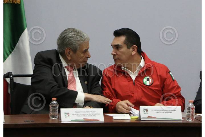 CIUDAD DE MÉXICO, 07OCTUBRE2019.- Carlos Aceves del Olmo, secretario general de la confederación de Trabajadores de México (CTM) y Alejandro Moreno, presidente del Partido Revolucionario Institucional, encabezó la toma de protesta del Consejo Político del Comité Directivo del PRI de la Ciudad en la sede del partido. FOTO: ROGELIO MORALES /CUARTOSCURO.COM