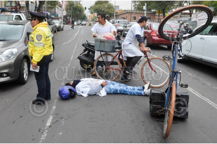 CIUDAD DE MÉXICO, 06SEPTIEMBRE2017.- Un joven repartidor de pollo fue atropellado cuando circulaba en su motoneta sobre la avenida Vertiz casi con Río de la Loza por un auto que dio una vuelta prohibida. El motociclista fue atendido por paramédicos del ERUM. FOTO: ARMANDO MONROY /CUARTOSCURO.COM