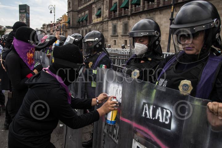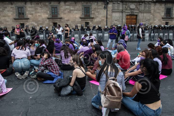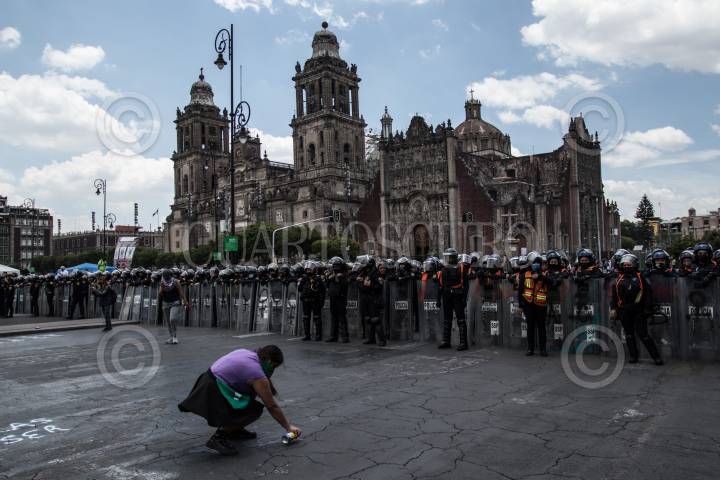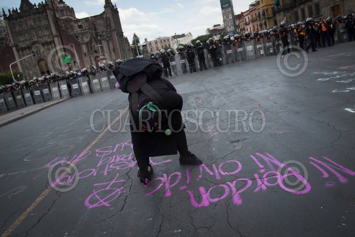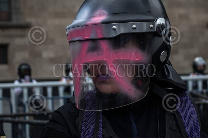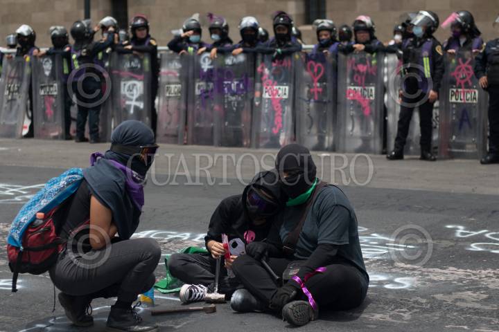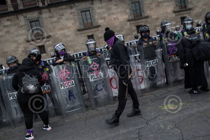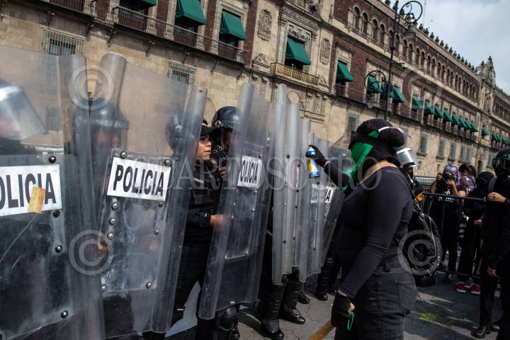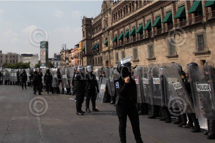 Policías resguardan Palacio Nacional durante protesta de colectivas feministas