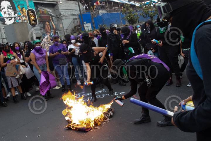 Mujeres de distintas colectivas feministas pacificas y del bloque negro marcharon desde el Monumento a la Revolución hasta el Zócalo Capitalino para exigir justicia por el asesinato de Fernanda Olivares “Polly” y la liberación e Diana Patricia. Du