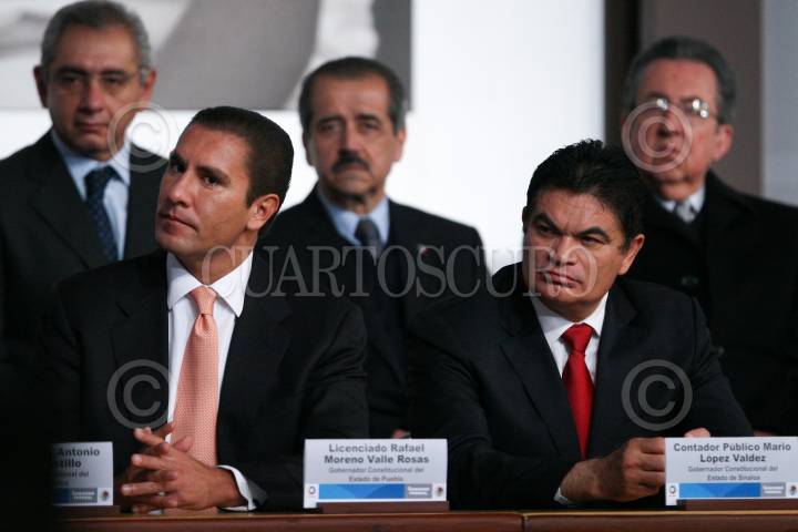 MÉXICO, D.F., 05FEBRERO2011.- Rafael Moreno Valle, gobernador de Pubela y Mario López Valdes, gobernador de Sinaloa, durante la ceremonia conmemorativa del 94 aniversario de la promulgación de la Constitución Política de los Estados Unidos Mexicanos de 1917 en el Palacio Nacional. FOTO: RODOLFO ÁNGULO/CUARTOSCURO.COM