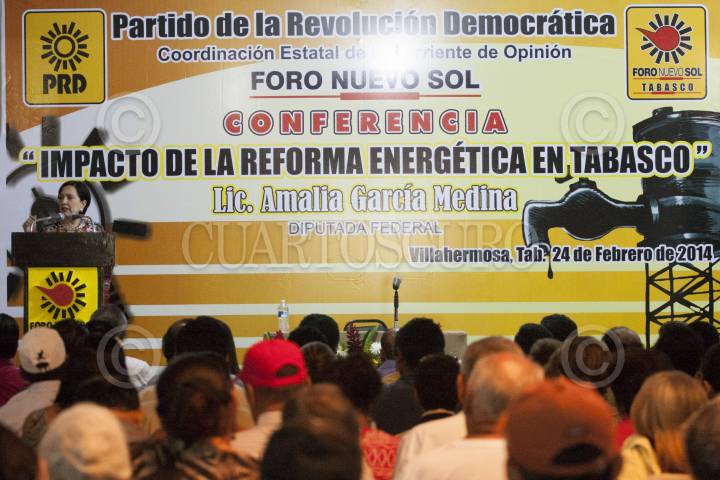 VILLAHERMOSA, TABASCO, 24FEBRERO2014.- Amalia García Medina, legisladora federal y ex gobernadora por el PRD en Zacatecas, presentó la conferencia “Impacto de la Reforma Energética en Tabasco”, en donde hizo alusión a distintas situaciones del hidrocarburo y del beneficio que buscan otros países debido al alto nivel de minerales existentes en el subsuelo tabasqueño. FOTO: MARCO POLO GUZMÁN HERNÁNDEZ /CUARTOSCURO.COM