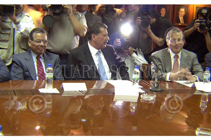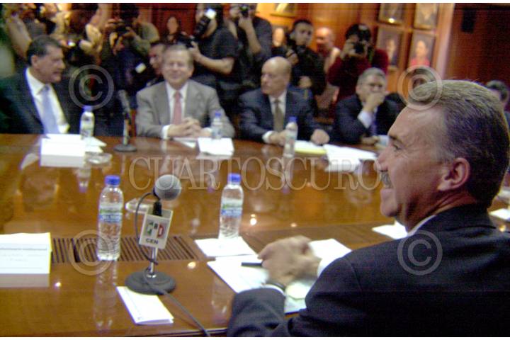 MEXICO, D.F. 22FEBRERO2005.- Roberto Madrazo Pintado, se reunió con integrantes del TUCOM, en el CEN del PRI. En la gráfica, Roberto Madrazo, Enrique Jackson, presidente de la mesa directiva de la Cámara de Senadores y Manuel Ángel Núñez Soto, gobernador de Hidalgo FOTO: Iván Stephens/CUARTOSCURO.COM