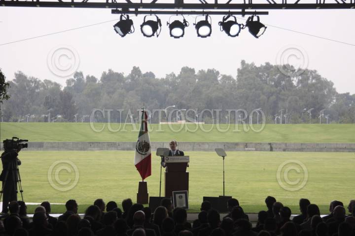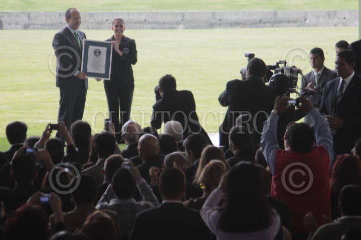 MÉXICO D.F., 26JULIO2012.- Felipe Calderón Hinojosa, presidente de México, recibió el récord guiness por el programa federal "Luz Sustentable" en el marco del lanzamiento de la segunda etapa del programa llevado a cabo en el Parque Bicentenario. FOTO: IVÁN STEPHENS /CUARTOSCURO.COM