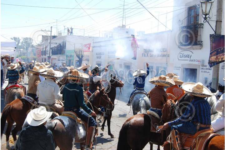 JEREZ, ZACATECAS, 23MARZO2008.-Continuando con la tradición de más de 100 años , ayer sabado de gloria se realizó la quema de Judas en donde participan charros de distintas partes del estado, de esta manera da inicio la feria de primavera de Jerez , que en su primer día tuvo una asistencia de por lo menos 40 mil visitante. FOTO: CARLOS SEGURA PEREZ/CUARTOSCURO.COM.
