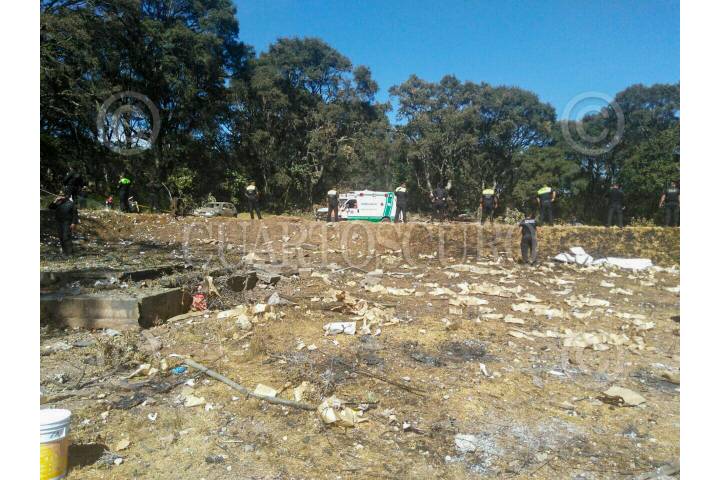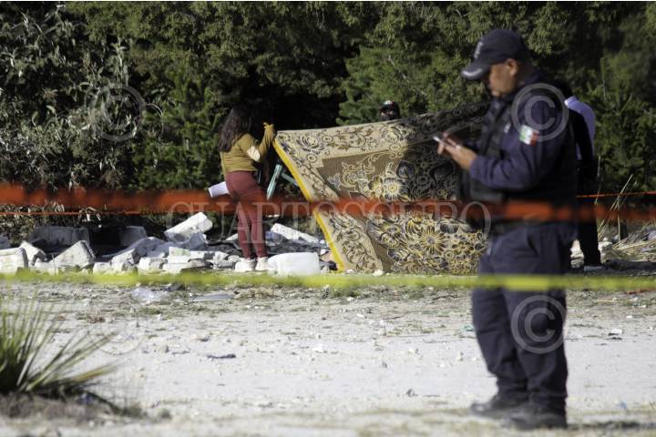 ZUMPANGO, ESTADO DE MÉXICO, 23OCTUBRE2019.- La Coordinación General de Protección Civil del Estado de México informó sobre la explosión de un polvorín, en la localidad de San Pedro La Laguna, en Zumpango, en la cual dos personas fallecieron y seis personas resultaron lesionadas, quienes ya reciben atención en el Hospital de Alta Especialidad de este municipio. La explosión se registró alrededor de las 12:45 horas al lugar llegó personal de Protección Civil estatal y municipal, Policías estatales y municipales, del Instituto Mexiquense de la Pirotecnia, del Servicio de Urgencias estatal y otros cuerpos de auxilio a la población. Se desconocer las causas que provocaron la explosión. FOTO: CUARTOSCURO.COM