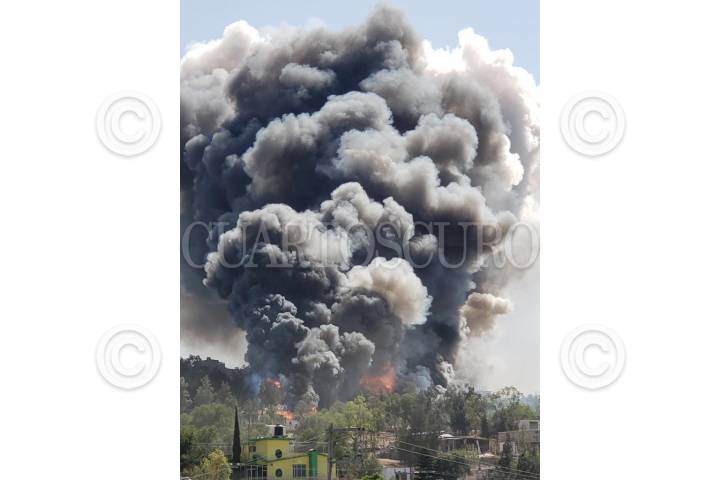 TULTEPEC, ESTADO DE MÉXICO, 25JUNIO2018.- Un casa en donde se fabricaban juegos pirotécnicos en este poblado explotó dejando un saldo de un muerto y seis heridos. El taller contaba con permiso de la Sedena, ubicado en la zona conocida como La Saucera en la carretera Xahuento-Tultepec. Los hechos ocurrieron alrededor de las 13:30 horas de este lunes y la nube negra de la explosión se observó varias cuadras a la redonda. FOTO: ARMANDO MONROY /CUARTOSCURO.COM