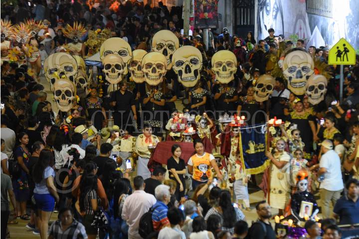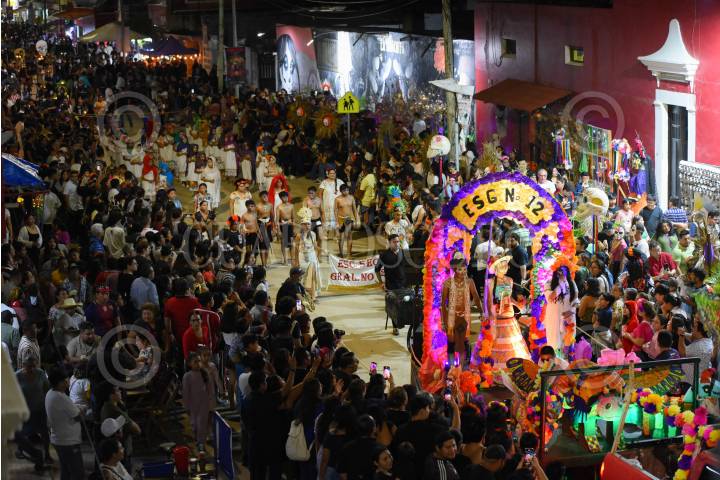 CAMPECHE, CAMPECHE, 01NOVIEMBRE2024.- A través del sonido del silbato Maya, los pixanes y las ánimas fueron llamados para su reencuentro con sus familiares, así es como dió inicio el festival del Paseo de las Ánimas en el poblado de Pomuch en Campeche con motivo de las celebraciones por Día de Muertos. FOTO: MICHAEL BALAM/CUARTOSCURO.COM