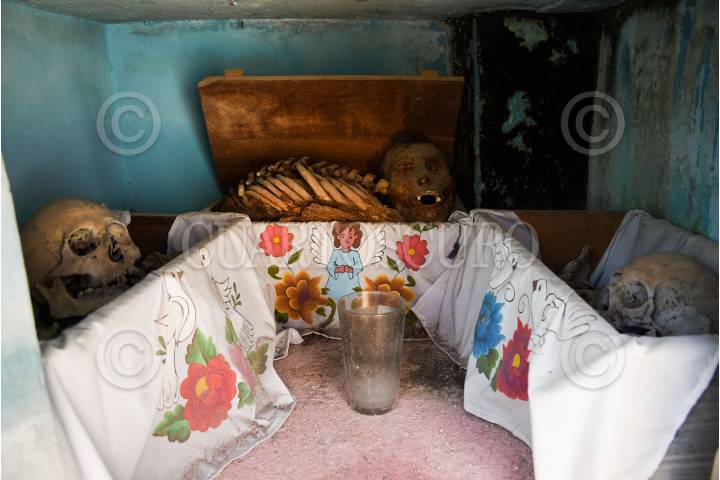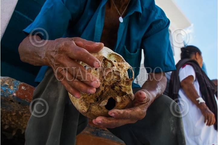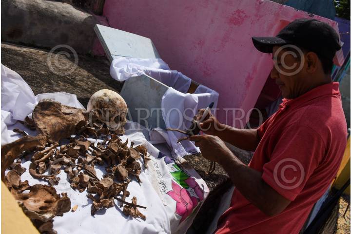 POMUCH, HECELCHAKAN, 25OCTUBRE2023.-Como cada año pobladores de Pomuch que en maya significa “lugar donde se asolean los sapos” del municipio de Hecelchakan, acuden al cementerio para realizar una tradición milenaria maya Choo Ba´ak o limpieza de huesos de sus seres queridos que se adelantaron al Xibalbá, esta práctica que ha pasado de generación y donde sus habitantes preparan el regreso de sus familiares con la limpieza de los restos y el cambio de paño de los osarios para que estén listos el día de muertos, pues para el habitante maya la muerte no era el fin de la vida, sino un ciclo dentro del universo. FOTO: MICHAEL BALAM/CUARTOSCURO.COM