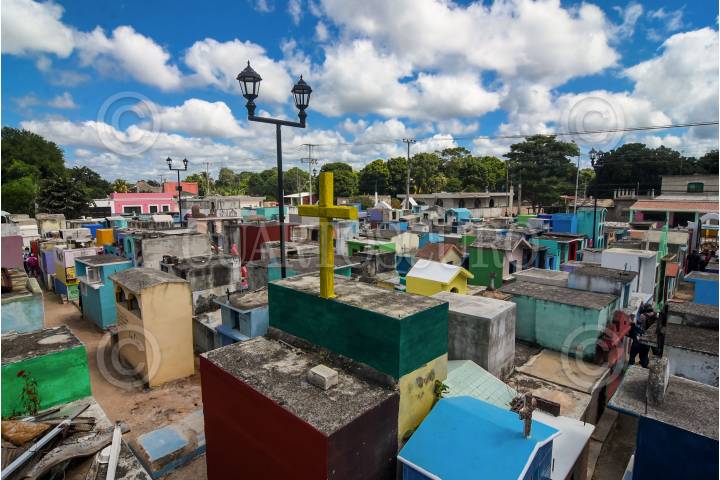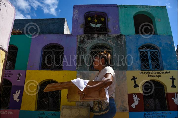 Previo a la celebración del Día de Muertos, decenas de familias se dan cita en el panteón de Pomuch, municipio de Hecelchakán en Campeche, para realizar la tradicional "Limpieza de los santos restos".