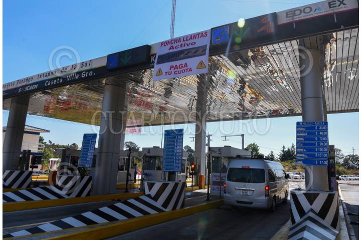 Sistema poncha llantas en la caseta de Villa Guerrero de la autopista Tenango-Ixtapan de la Sal, taxistas y particulares se brincaban esta caseta sin pagar.