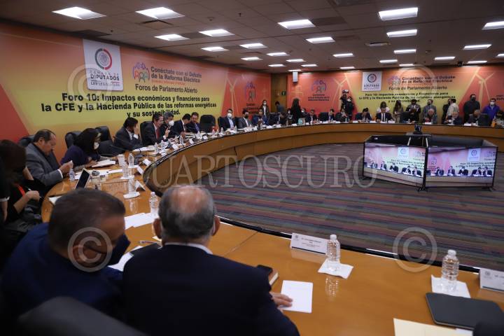 Diputados y ponentes durante el Foro 10 del Parlamento Abierto donde se discute la propuesta a la reforma eléctrica en la Cámara de Diputados Federal.