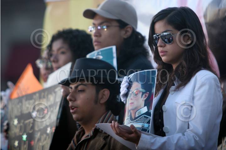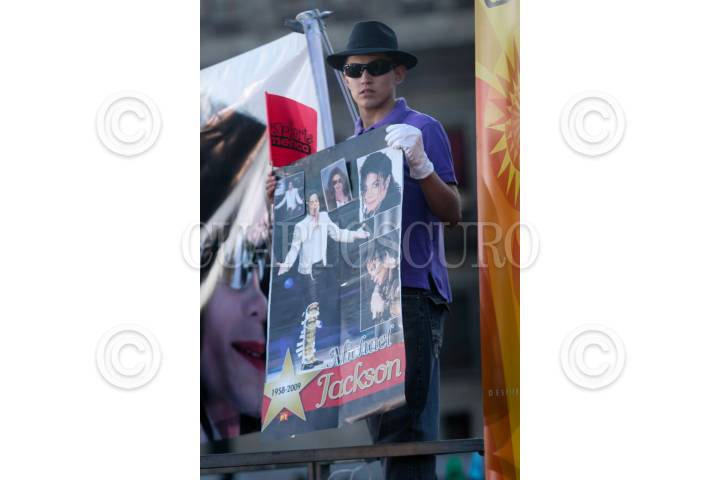 MÉXICO, D.F., 07JULIO2009.- Algunos fans del Michael Jackson, se reunieron en el Zócalo Capitalino, convocados por una televisora, estos fans ofrecieron un pequeño homenaje el Rey de POP. FOTO: RICARDO CASTELAN/CUARTOSCURO.COM