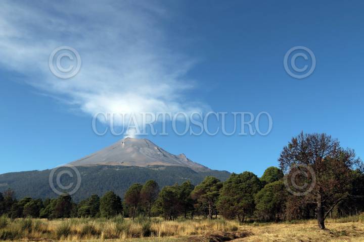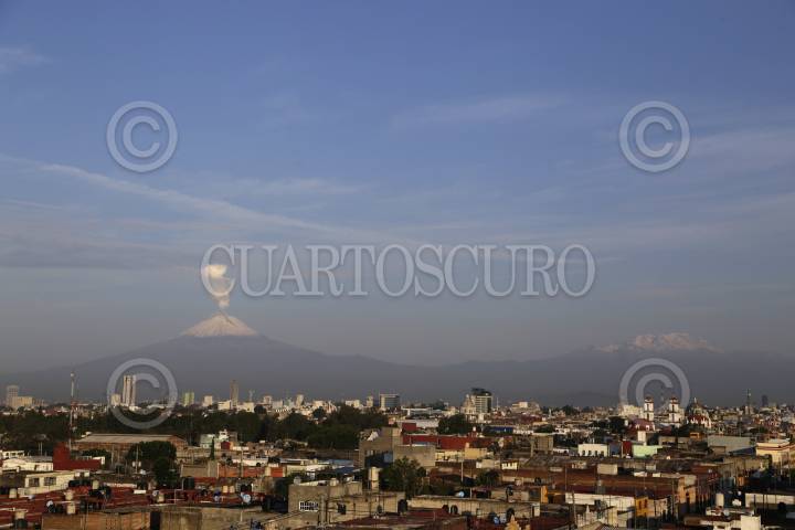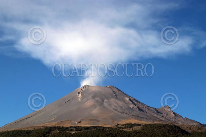PUEBLA,PUEBLA, 24JUNIO2018.- El volcán Popocatépetl amaneció con varias exhalaciones de ceniza y vapor de agua la mañana de hoy. FOTO: HILDA RÍOS/ CUARTOSCURO.COM