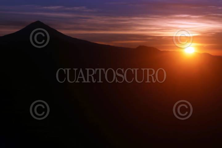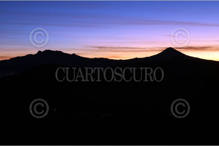 CIUDAD DE MÉXICO, 29DICIEMBRE2018.- Las siluetas a contraluz de los volcanes Iztaccíhuatl y Popocatépetl en el amanecer de este día desde la cima del volcán El Pelado, de 3620 msnm, ubicado al sur en el Campo Volcánico Sierra Chichinautzin, cerca de la comunidad de Parres en Tlalpan. FOTO: MARGARITO PÉREZ RETANA /CUARTOSCURO.COM