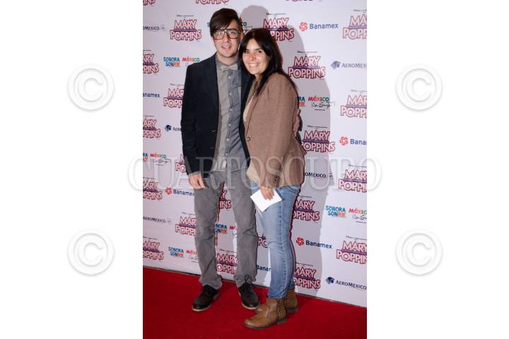 MÉXICO, D.F., 20ENERO2012.- Andrea Torre y Pedro Ortíz de Pineo, posan durante la alfombra roja de la puesta en escena "Mary Poppins" en el Auditorio Nacional. FOTO: MISAEL VALTIERRA/CUARTOSCURO.COM