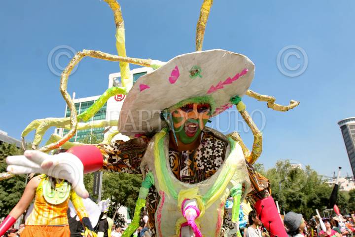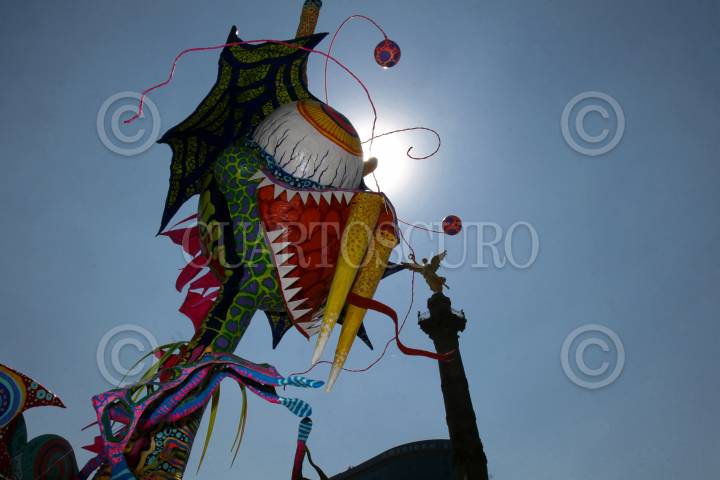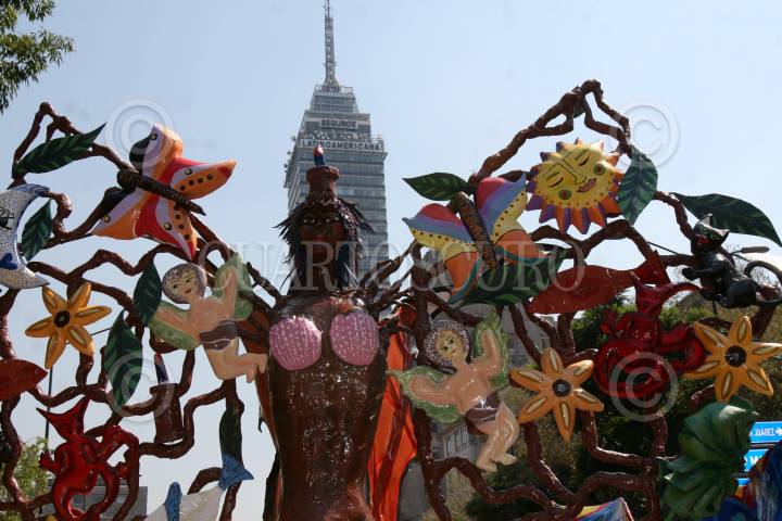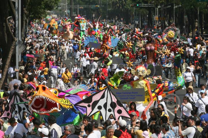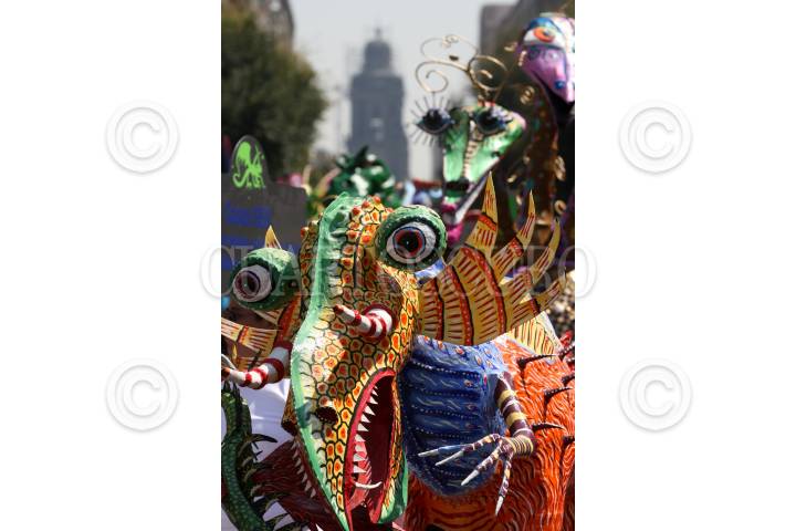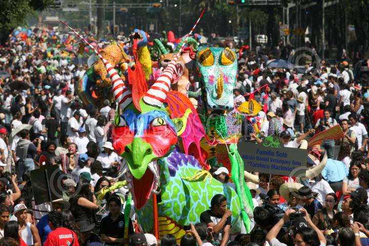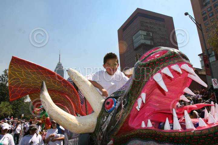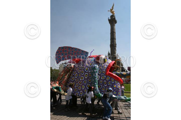 MÉXICO, D.F., 25OCTUBRE2008.- Más de ochenta alebrijes monumentales participaron en una desfile que salió del Centro Histórico a la Diana Cazadora ubica sobre Paseo de la Reforma, las figuras artístico-fantástica surgidas de la inspiración y talento de artesanos mexicanos fueron disfrutadas por el público que asistió. Los "Alebrijes Monumentales" permanecerán para su exhibición en las aceras principales de Reforma. FOTO: MOISÉS PABLO/CUARTOSCURO.COM