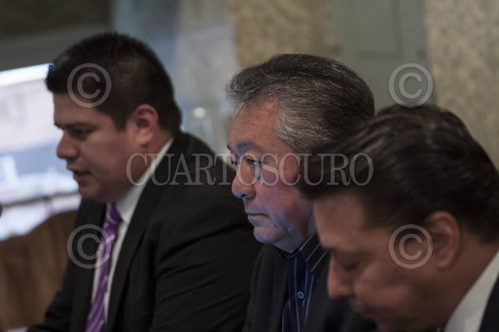 MÉXICO, D.F., 03OCTUBRE2012.- Carlos Ramayo, de la Confederación de Porcicultores Mexicanos, acompañado de Alejandro Ramírez, de la organización de porcicultores mexicanos y Manuel Gascon durante la presentación del XI Encuentro Nacional de Porcicultura 2012 que se realizará del 10 al 13 de octubre en Cancún. FOTO: RODOLFO ANGULO /CUARTOSCURO.COM