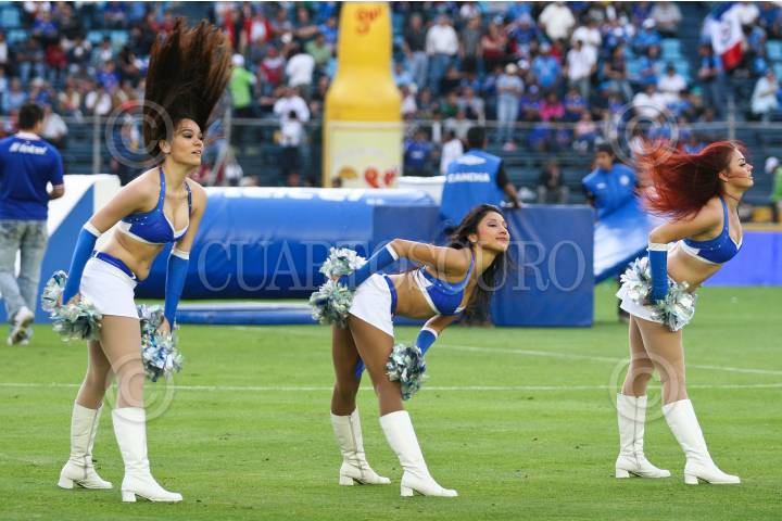 MÉXICO, D.F., 19FEBRERO2011.- Bellas animadoras apoyan a la Máquina Celeste de Cruz Azul, en la victoria ante los Zorros del Atlas por dos goles a uno, durante partido de la jornada 7 del Clausura 2011, disputado en el estadio Azul. FOTO: ISAAC ESQUIVEL/CUARTOSCURO.COM