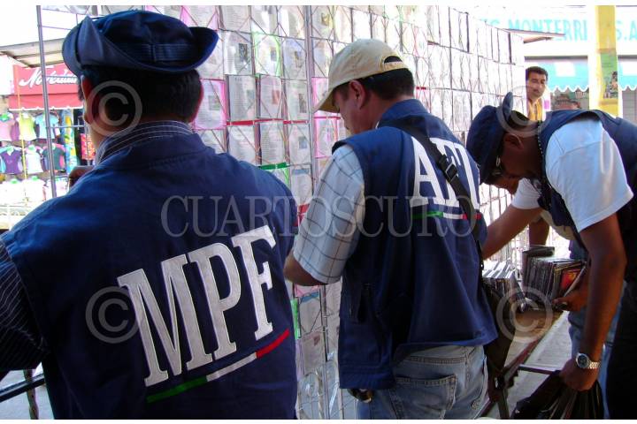 VILLAHERMOSA, TABASCO, 25DICIEMBRE2007.-Agentes de la Policía Federal y Agencia Federal de Investigación lograron mediante un operativo sorpresa asegurar 8 mil discos y portadillas de reproducción ilícita en el mercado público de Tamúlte de las Barrancas. FOTO: MARCO POLO GUZMÁN HERNÁNDEZ/CUARTOSCURO.COM