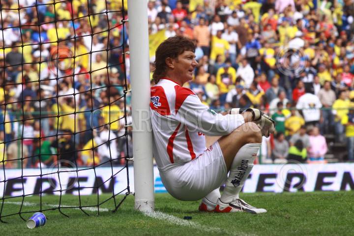 MÉXICO, D.F., 30AGOSTO2009.-El portero Argentino Rolando Hernán Cristante Torneo Apertura 2009 se sienta en la portería, después de ver los resultados de su equipo ante las Águilas de Ámerica durante la fecha seis del Torneo Apertura 2009 del futbol mexicano. FOTO: SÁSHENKA GUTIÉRREZ/CUARTOSCURO.COM