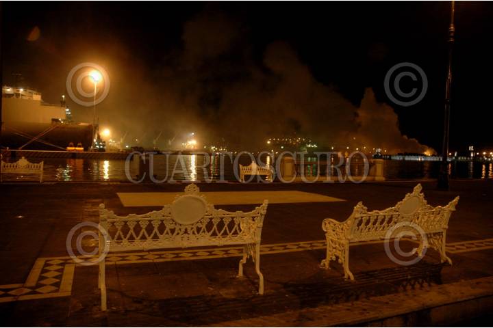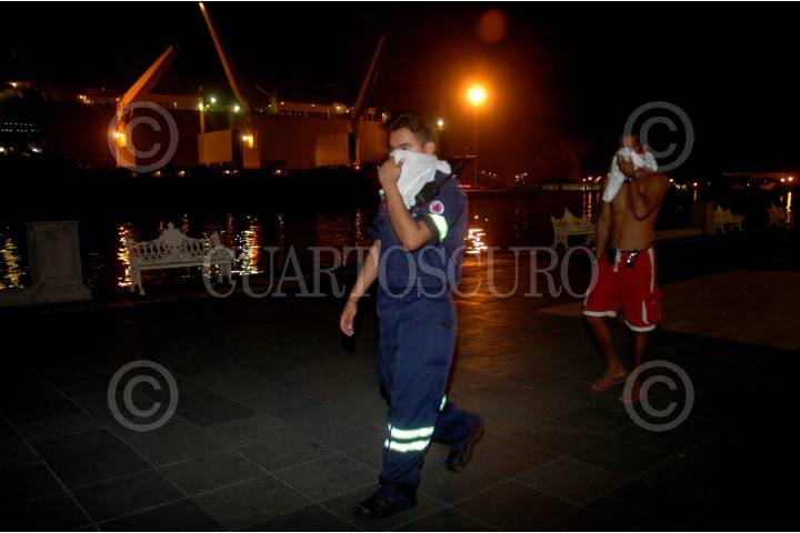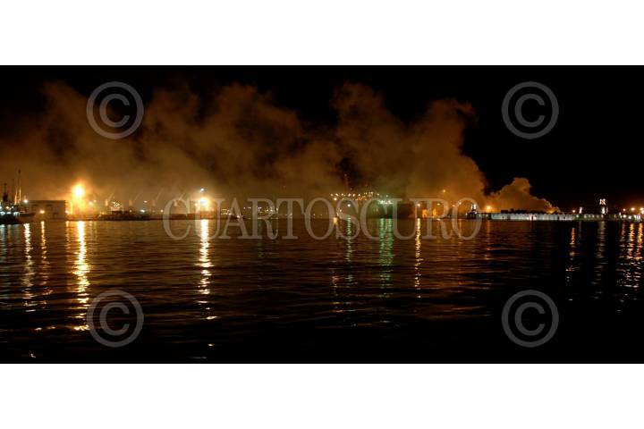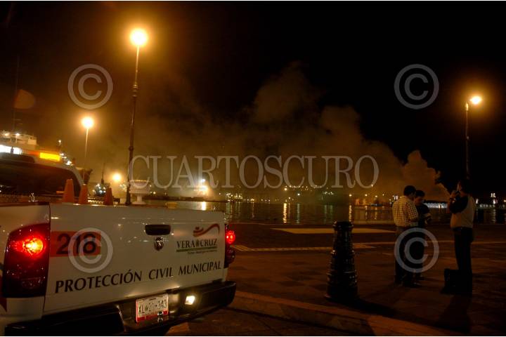 VERACRUZ, VERACRUZ, 26OCTUBRE2008.- Ayer por la noche se registró una fuerte explosión en la zona de contenedores del recinto portuario, un contenedor que transportaba ácido tricloroisocianúrico-seco, lo que provocó una nube toxica y la zona portuaria tuvo que ser desalojada en su totalidad, el área turística del malecón y colonias aledañas ubicadas al norte de la ciudad. FOTO: JOSÉ CANDELARIO/CUARTOSCURO.COM