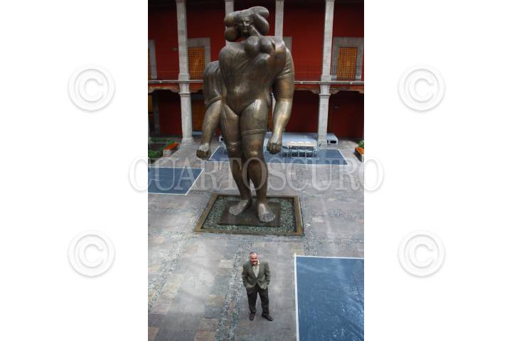 MÉXICO, D.F., 27JULIO2009.- Jose Luis Cuevas posa junto a su obra "La Giganta" FOTO: SÁSHENKA GUTIÉRREZ/CUARTOSCURO.COM