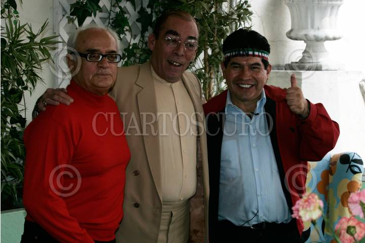MÉXICO, D.F., 23OCTUBRE2009.- Alberto Rojas el caballo posa juanto a Rafael Acosta "Juanito" delegado con licencia de Iztapalapa y Salvador Varela productor durante la conferencia de prensa para anunciar la puesta en escena " Hay Juanito no te rajes" FOTO: IVAN MENDEZ/CUARTOSCURO.COM