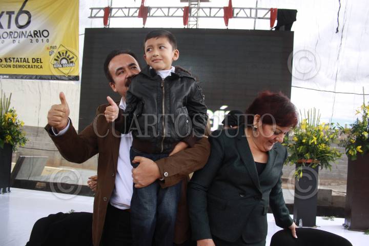 ZACATECAS, ZACATECAS 31ENERO2010.- Antonio Mejia Haro candidato como gobernador al estado de Zacatecas acompañado por su familia posa para los fotografos previo a que el ex senador tomara protesta como candidato del sol azteca por la gobernatura del Estado. FOTO: SÁSHENKA GUTIÉRREZ/CUARTOSCURO.COM