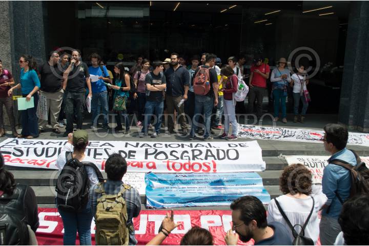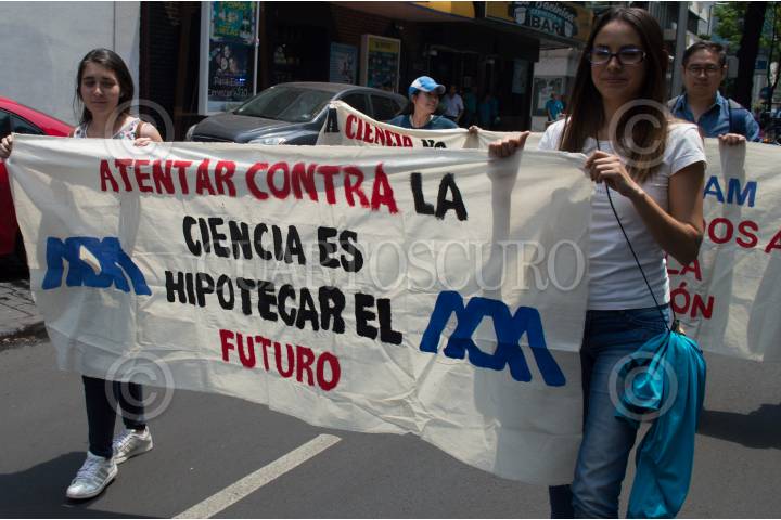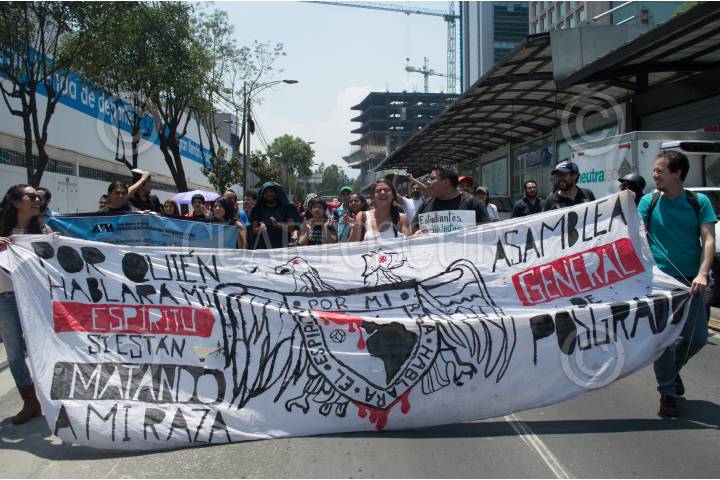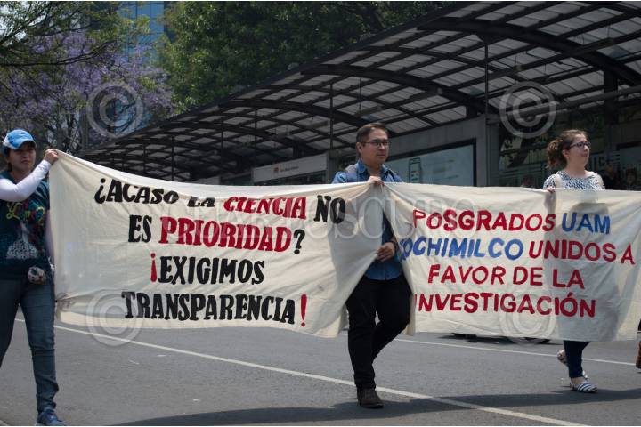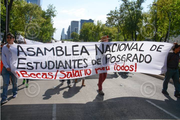 CIUDAD DE MÉXICO, 07ABRIL2017.- Alumnos de posgrado de la Universidad Nacional Autónoma de México (UNAM), la Universidad Autónoma Metropolitana, el Instituto Politécnico Nacional, y otras, marcharon desde las torres de rectoría de la UNAM hacia el Consejo Nacional de Ciencia y Tecnología. Los manifestantes exigian becas y educación pública gratuita. FOTO: SELENE PACHECO /CUARTOSCURO.COM