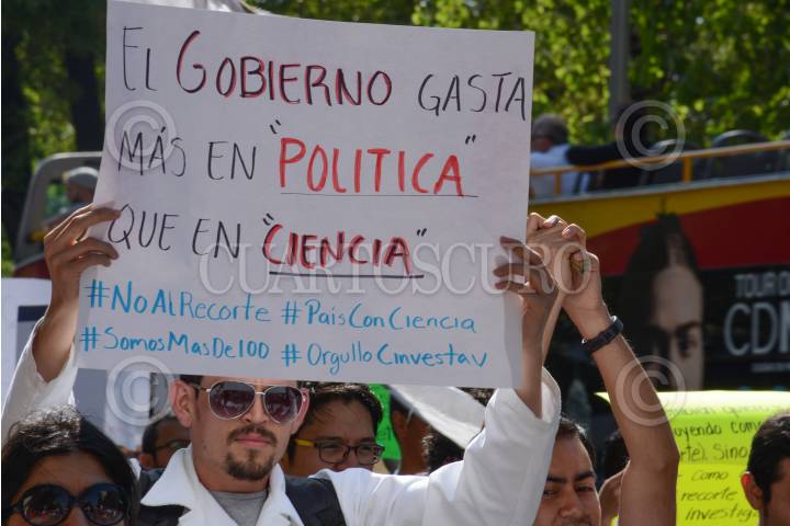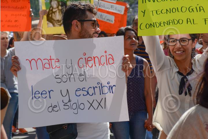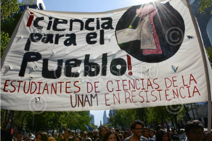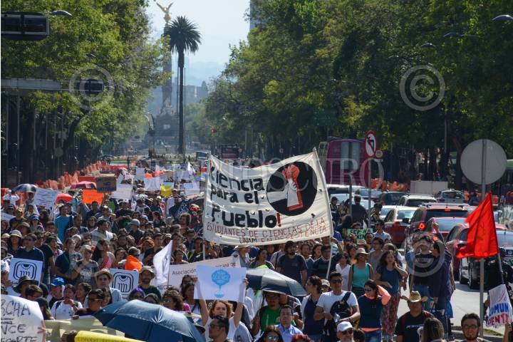 CIUDAD DE MÉXICO, 22ABRIL2017.- Estudiantes e investigadores de diversas universidades del país, principalmente del nivel de posgrado, participaron en la “Marcha por la ciencia” la cual se efectúa en más de 100 países. Desde el ángel de la independencia hasta el zócalo capitalino, se hizo un llamado al gobierno federal y a la sociedad para reconocer la importancia que requiere la inversión en la ciencia, para el desarrollo del país en diversos ámbitos. FOTO: MARIO JASSO /CUARTOSCURO.COM