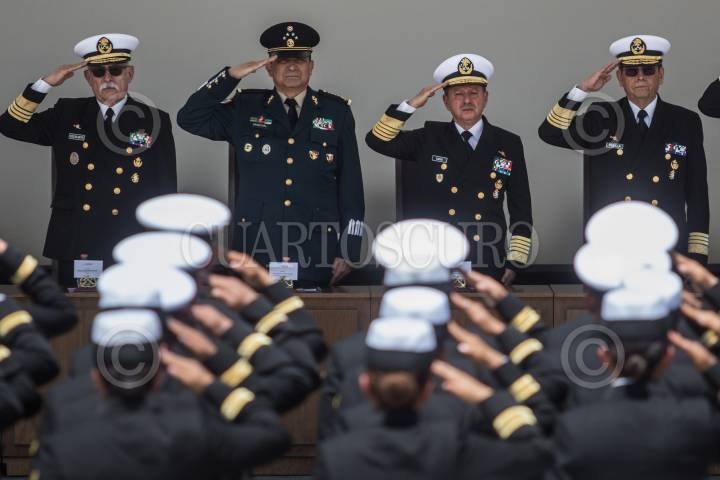 CIUDAD DE MÉXICO, 08MARZO2019.- La Secretaría de Marina realizó la ceremonia por la IV Graduación de Posgrados en Sanidad Naval, la cual estuvo encabezada por los secretarios Luis Cresencio Sandoval González, de la Defensa, y José Rafael Ojeda Durán, de Marina. FOTO: ISAAC ESQUIVEL /CUARTOSCURO.COM