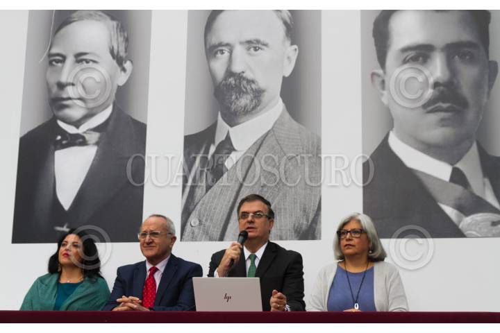 CIUDAD DE MÉXICO, 01OCTUBRE2018.- Los integrantes del gobierno electo; Alejandra Frausto, Cultura, Jesús Seade, designado como integrante del equipo negociador del TLCAN; Marcelo Ebrard Casaubón, Relaciones Exteriores, y Graciela Márquez Colín, Economía, leyeron un comunicado sobre su posicionamiento de los acuerdos alcanzados en las negociaciones del Tratado de Libre Comercio, en donde ayer de última hora se sumó Canadá, con esto el acuerdo comercial continuará siendo trilateral. La lectura se realizó en la Casa de Transición. FOTO: MOISÉS PABLO /CUARTOSCURO.COM