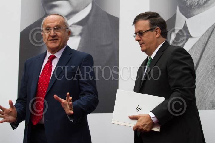 CIUDAD DE MÉXICO, 01OCTUBRE2018.- Jesús Seade, designado como integrante del equipo negociador del TLACN por parte del Gobierno Electo, y Marcelo Ebrard, futuro secretario de Relaciones Exteriores, al finalizar la lectura del comunicado respecto a los acuerdos alcanzados en la negociaciones del nuevo entendimiento comercial entre México, Estados Unidos y Canadá, en la Casa de Transición. FOTO: MOISÉS PABLO /CUARTOSCURO.COM