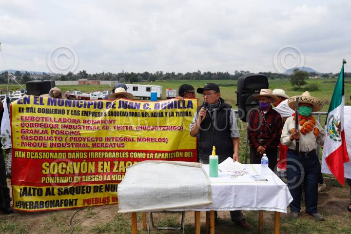 Integrantes del Frente de Pueblos en Defensa de la Tierra y el Agua ofrecieron su posicionamiento ante el surgimiento del socavón en Juan C. Bonilla, Puebla.