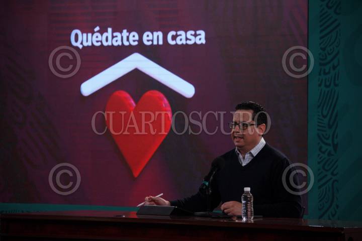 José Luis Alomía Zegarra, director general de epidemiología durante el informe diario de COVID-19 que se lleva a cabo en Palacio Nacional. Se destacó el tema del positivo a Covid-19 de Andrés Manuel López Obrador, presidente de México.