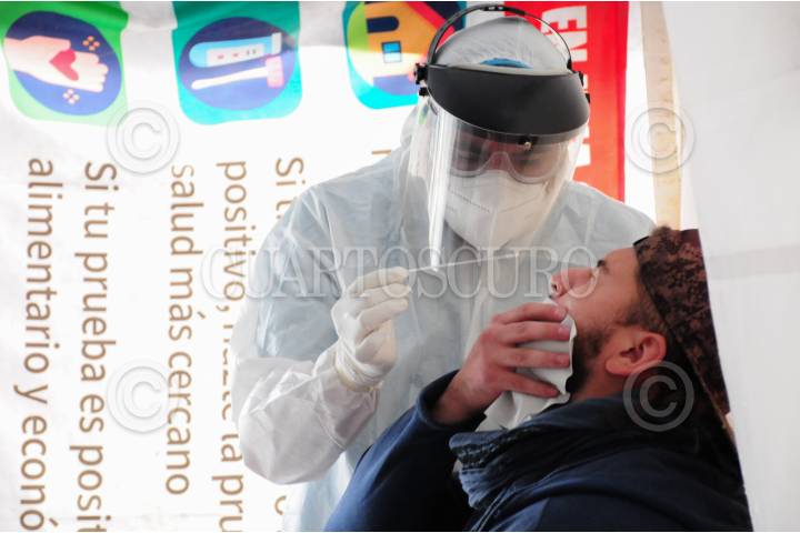 Un hombre se aplica una prueba Covid en el kiosko de Venustiano Carranza.