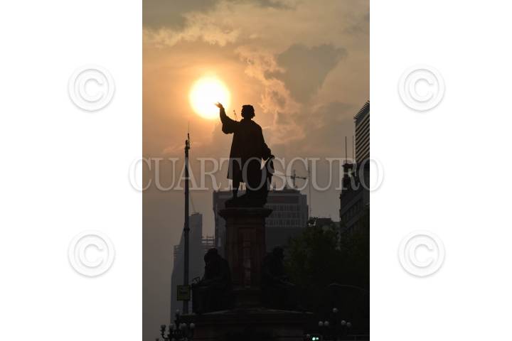 CIUDAD DE MÉXICO, 26ENERO2018.- Atardecer en el monumento a Cólon ubicado en avenida Paseo de la Reforma. FOTO: MARIO JASSO /CUARTOSCURO.COM