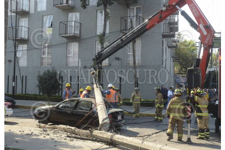 CIUDAD DE MÉXICO, 13DICIEMBRE2016.- Un tráiler derribo varios postes de luz, provocando que una de estas estructuras de concreto cayera sobre un auto estacionado, en la calle de Doctor Roberto S. Quiroz y el Eje Tres Sur, en la colonia Buenos Aires. FOTO: ARMANDO MONROY /CUARTOSCURO.COM