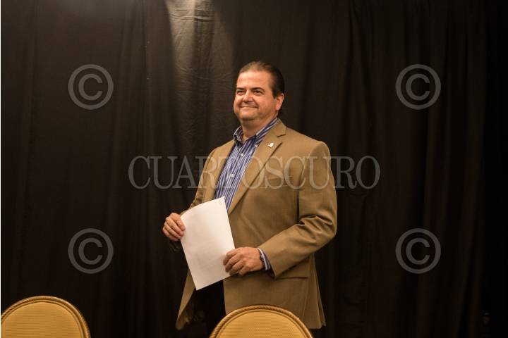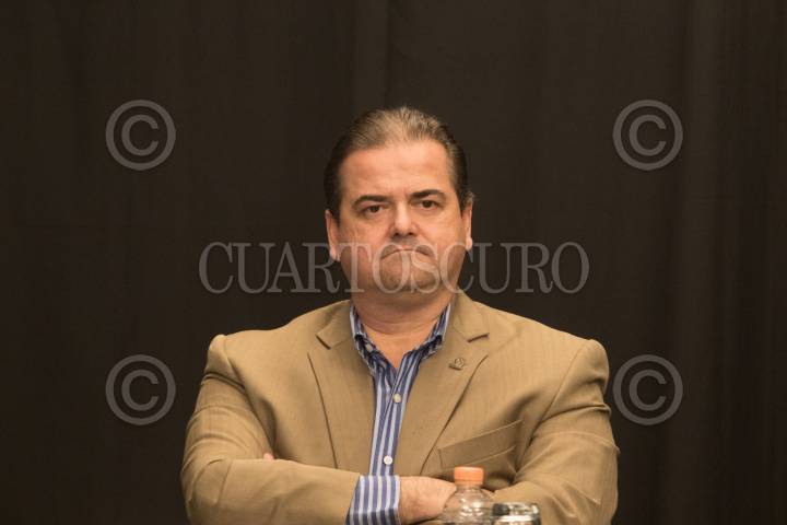 CIUDAD DE MÉXICO, 15OCTUBRE2019.- Reginaldo Esquer Félix, presidente de la comisión nacional fiscal de la Coparmex, participó en la conferencia de prensa en la que señalaron que el sector empresarial se siente engañado por el gobierno federal y el poder legislativo ya que a pesar que el gremio participó en las mesas de trabajo de la elaboración de la ley que contempla equiparar el fraude fiscal al nivel de crimen organizado, no los tomaron en cuenta, ya que ellos consideran que el delito de evasión fiscal a través de facturas falsas no puede ser juzgado como delito federal. FOTO: MOISÉS PABLO /CUARTOSCURO.COM