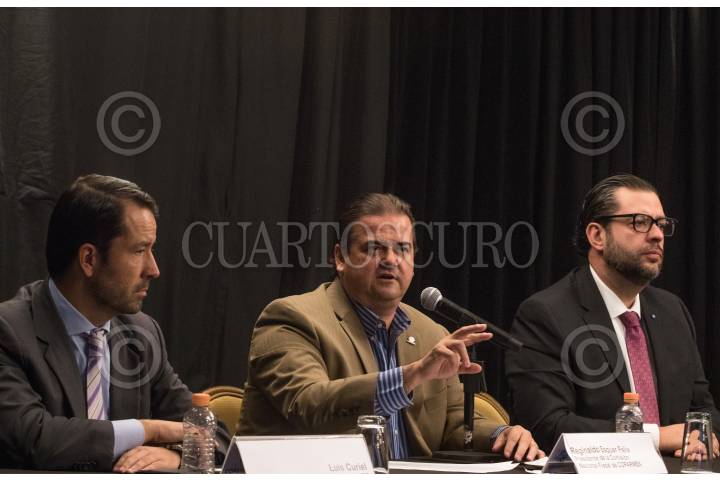 CIUDAD DE MÉXICO, 15OCTUBRE2019.- Luis Curiel, presidente de la comisión fiscal ANADE; Reginaldo Esquer Félix, presidente de la comisión nacional fiscal de la Coparmex, y Arturo Pueblita, presidente de la Academia Fiscal Mexicana, ofrecieron una conferencia de prensa para decir que se sienten engañados por el gobierno federal y el poder legislativo, ya que a pesar que el gremio empresarial participó en las mesas de trabajo de la elaboración de la ley que contempla equiparar el fraude fiscal al nivel del crimen organizado, no los tomaron en cuenta, ya que ellos consideran que el delito de evasión fiscal a través de facturas falsas no puede ser juzgado como delito federal. FOTO: MOISÉS PABLO /CUARTOSCURO.COM